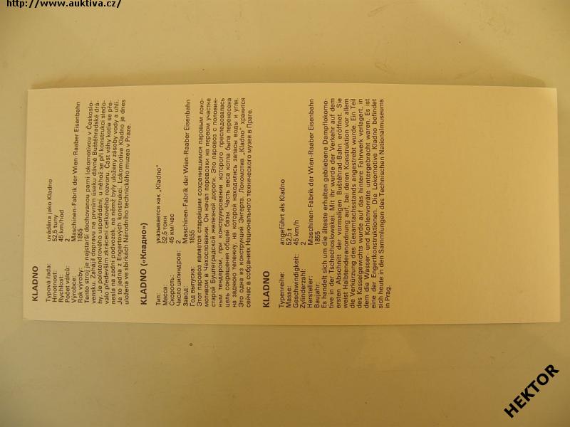 Český barevný obrázek velikosti 240 x 105 mm - parní lokomotivy KLADNO bez přezdívky a další detail. Nová nepoužitá. Cena je za 1 kus.