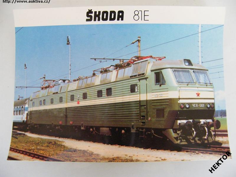 Barevný obrázek dvoudílné elektrické lokomotivy ČS 8 - 001 pro Rusko - na zkušebním okruhu ve Velimi - ŠKODA tovární typ 81 E - 208 x 146 mm. Nový nepoužitý. Cena je za 1 kus.