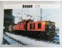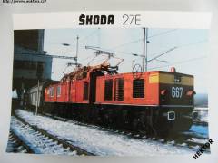 Barevný obrázek třídílné důlní elektrické lokomotivy - ŠKODA tovární typ 27 E - 208 x 146 mm. Nový nepoužitý. Cena je za 1 kus.