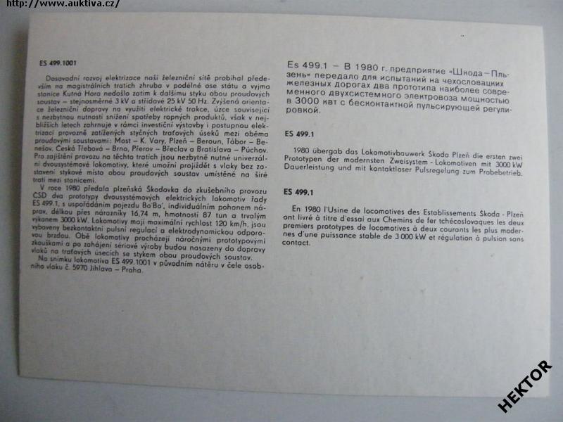Český barevný obrázek elektrické lokomotivy ES 499.1001 ČSD z dob hluboké totality. Nový nepoužitý. Cena je za 1 kus.