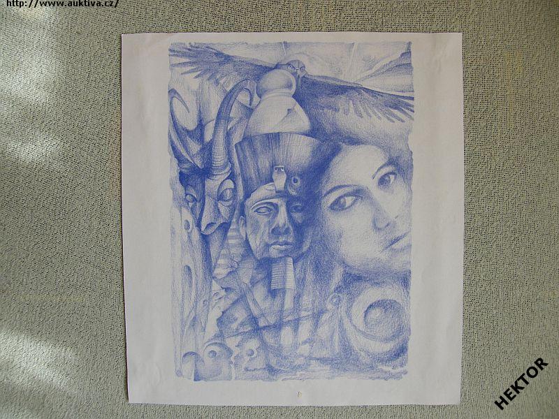 Obrázek modře malovaný, byl nalepen na zeď. Cena je za 1 kus.