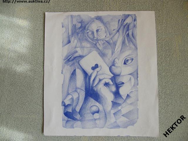 Obrázek modře malovaný, byl nalepen na zeď. Cena je za 1 kus.