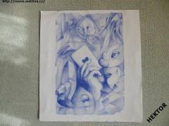 Obrázek modře malovaný, byl nalepen na zeď *3
