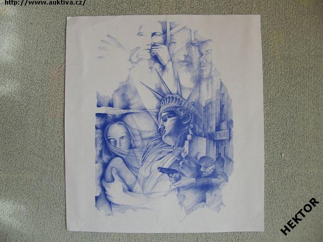 Obrázek modře malovaný, byl nalepen na zeď. Cena je za 1 kus.