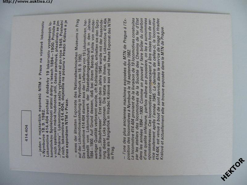 Barevný obrázek parní lokomotivy řady 414.404. Nová nepoužitá. Cena je za 1 kus.