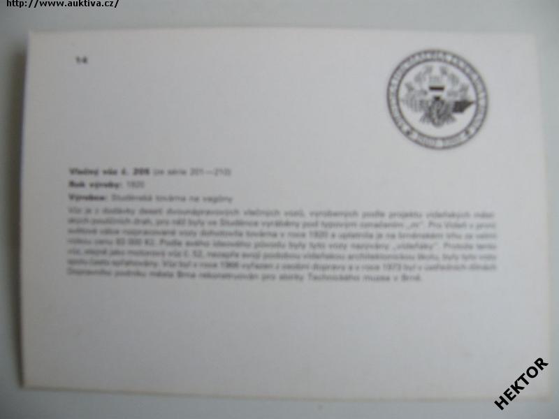 Barevný obrázek vlečného vozu číslo 205 - číslo 14. Nový nepoužitý. Cena je za 1 kus.