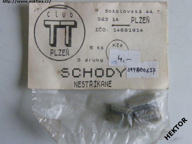 Odlitek různých schodů – 5 kusů – HO/TT/N. Výrobcem firma TT club Plzeň. Nové nepoužité. Cena je za 1 balení.