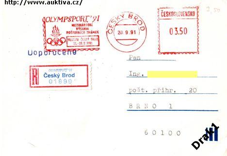 Olympsport Mezinárodní výstava známek Český Brod 1991 příležitostný výplatní otisk, příležitostná R nálepka