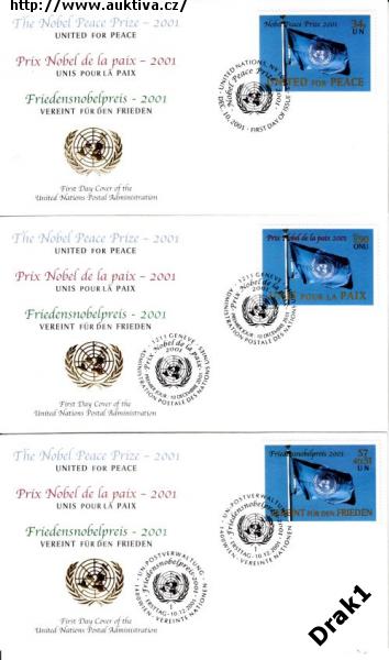 OSN 2001 Nobelova cena míru, vlajka OSN, Michel č.US 888 Šv.432 Ra.350 FDC
