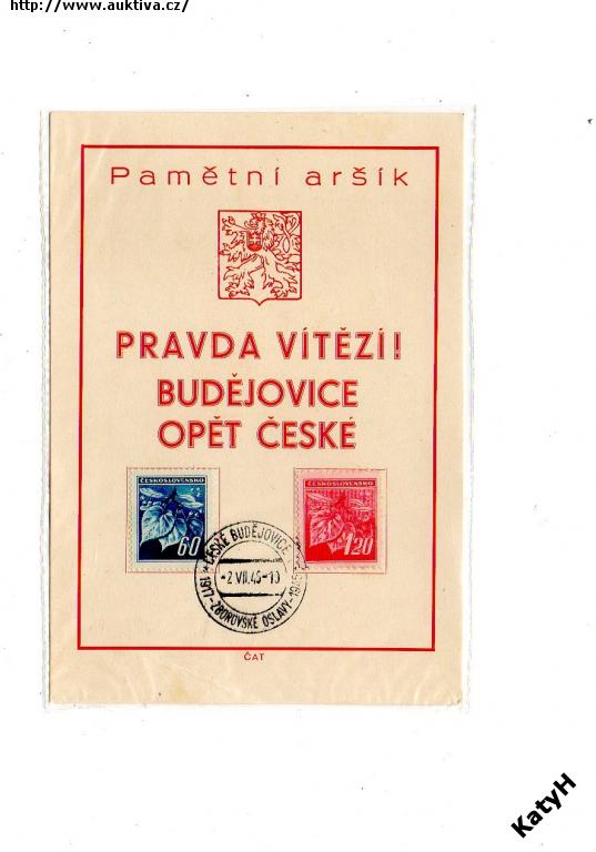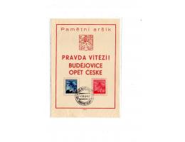 Pamětní aršík raz.Budějovice Zborovské oslavy r.1945 O2/514