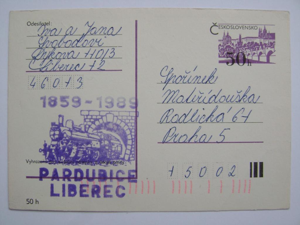 PARDUBICE - LIBEREC 1859-1989 - 130 let železnice razítko