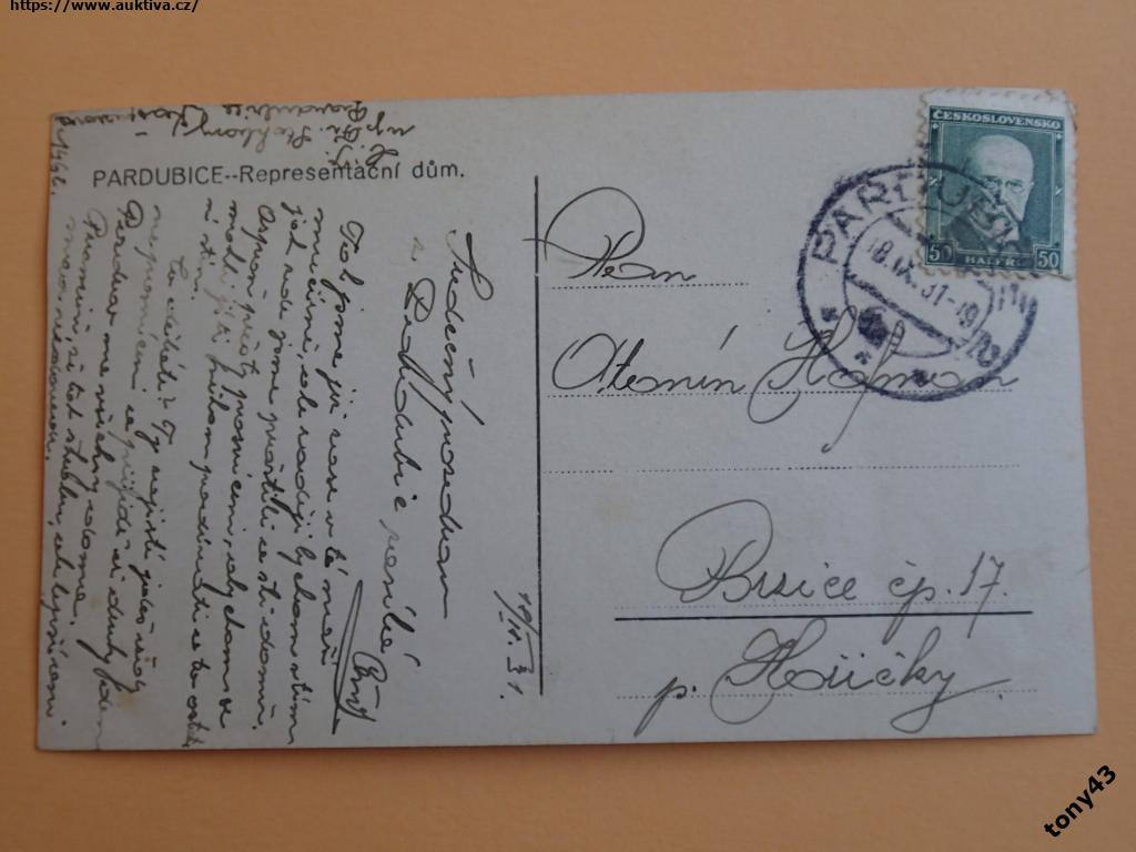 PARDUBICE - Representační dům - auta - lidé - odeslán 1931