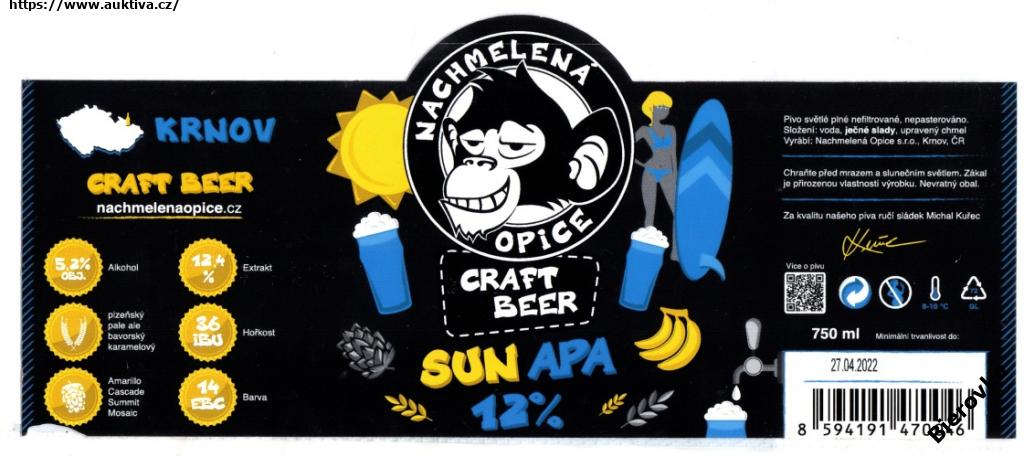 PEMD 1 ks použitá samolepka SUN APA ♥ pivovar KRNOV