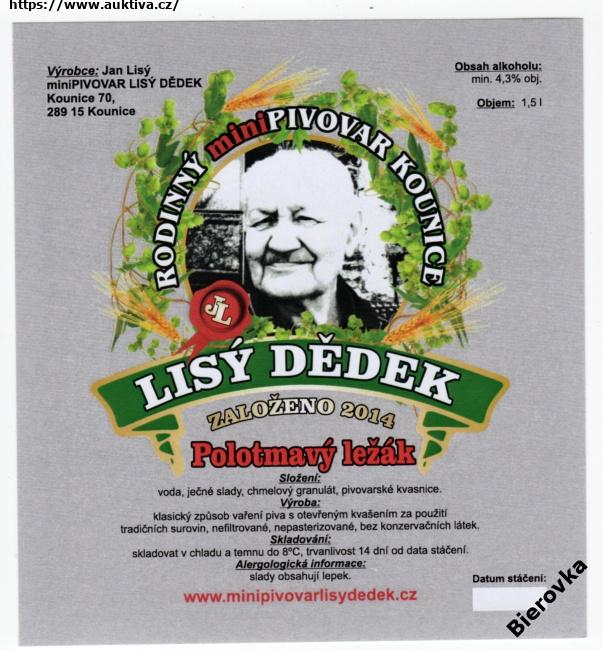 PEMD 1 ks SAMOLEPKA LISÝ DĚDEK 2014 POLOTM♥ pivovar KOUNICE