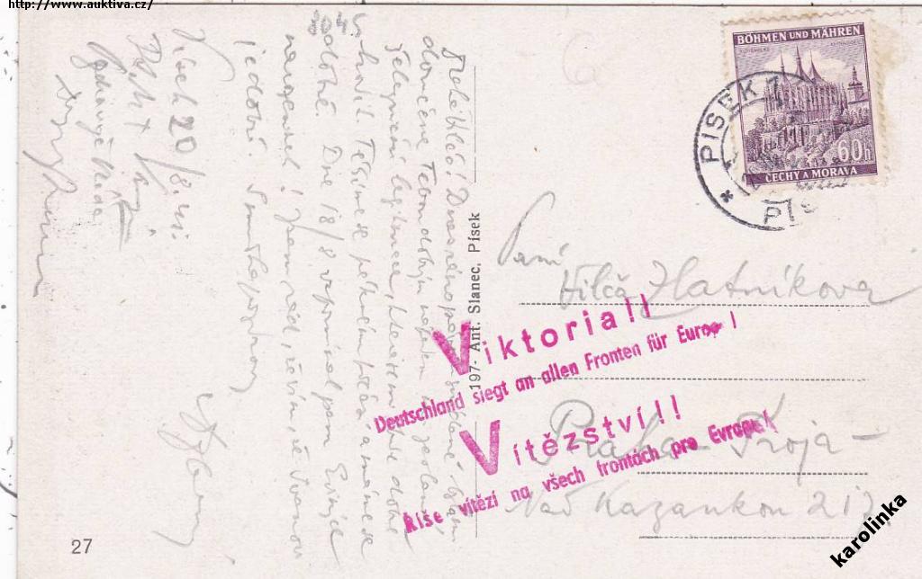 PÍSEK =ČERVENÉ RAZÍTKO VIKTORIA =rok1940? *BE8045