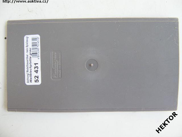 Plastový výlisek střešní vlnitý plech – šedý – rozměru 196 x 97 mm, kat. č. 52431 - HO/TT. Výrobcem firma Auhagen. Nový nepoužitý. Cena je za 1 kus.