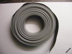 Plochý propojovací vodič s 24 žílami šedý, na jedné straně po délce je tmavě červený, celková délka cca 14 metrů. Nový nepoužívaný. Cena je za 1 metr.