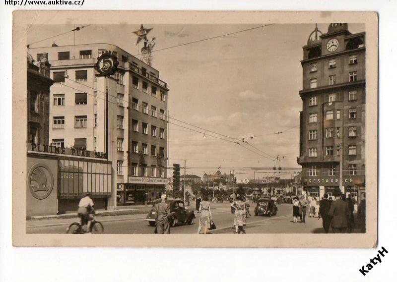Plzeň lidé,auta,restaurace r.1953,prošlá E2/92