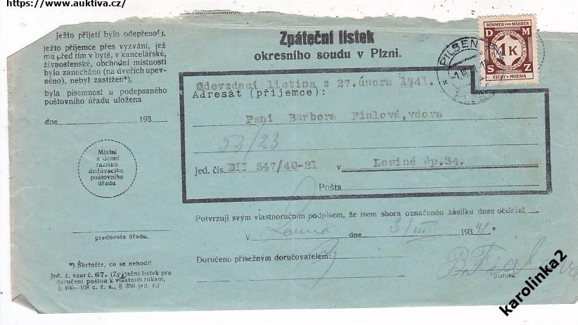 PLZEŇ=ZPATEČNÍ LÍSTEK=rok1941*P4582