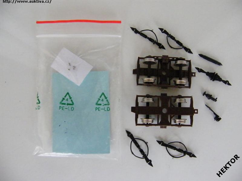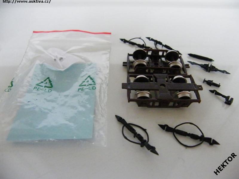 Podvozky lepený Pensylvan I - tmavý hnědý - 1pár - TT - kat. č. 09538, s kovovými dvojkolími - Malá železnice + 6 malých kovových kuliček do ložisek lokomotiv + 2 pevná spřáhla 09004 + 1 pevné spřáhlo 09007 + 1 pevné spřáhlo 09008 + 2 pevná spřáhla 09009 + 2 různé díly TT. Výrobcem TT club Plzeň. Nový nepoužitý. Cena je za 1 balíček.