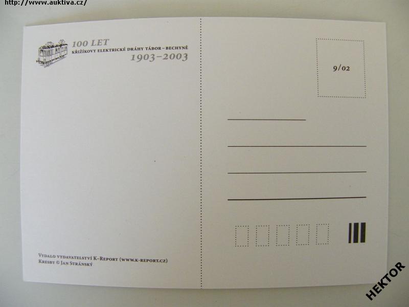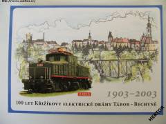 Česká barevná pohlednice - 100 let Křižíkovy elektrické dráhy Tábor - Bechyně - 1903 - 2003 s elektrickou lokomotivou E 423.001 ČSD. Nová nepoužitá. Cena je za 1 kus.