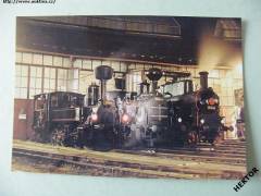 Pohlednice - 3 parní lokomotivy - noční foto *937
