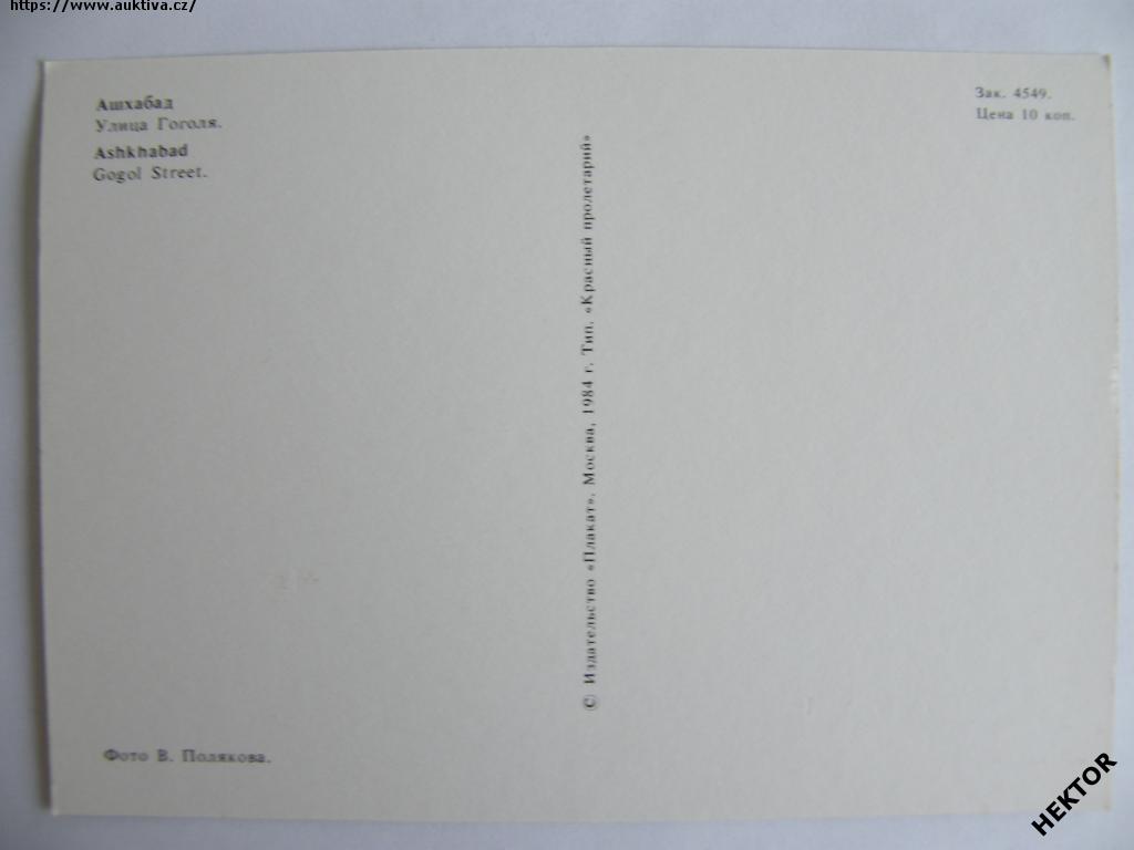 Ruská barevná pohlednice - Ašchabad. Z 80. let 20. století. Nová nepoužitá. Cena je za 1 kus.