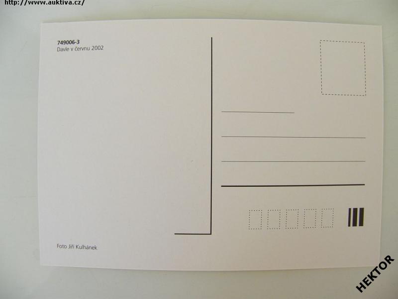 Česká barevná pohlednice - dieselová lokomotiva 749.006-3 na přejezdu v Davli v červnu 2002. Nová nepoužitá. Cena je za 1 kus.