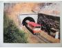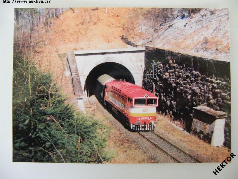 Česká barevná pohlednice - dieselová lokomotiva 750.371-7 s rychlíkem vyjíždí z Litického tunelu. Nová nepoužitá. Cena je za 1 kus.