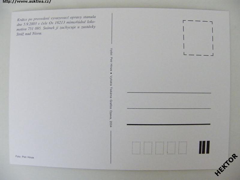 Česká barevná pohlednice - dieselová lokomotiva 751.095-1 s osobním vlakem u zastávky Stráž nad Nisou dne 5. 9. 2003. Nová nepoužitá. Cena je za 1 kus.