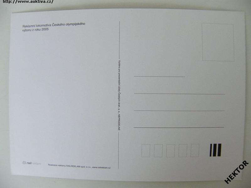 Česká barevná pohlednice - elektrická lokomotiva 363.078-7 (ex. ES 499.1) ČD nazývaná Peršing s celoplošnou reklamou Českého olympijského výboru z roku 2005 na Pražském hl. nádraží. Nová nepoužitá. Cena je za 1 kus.
