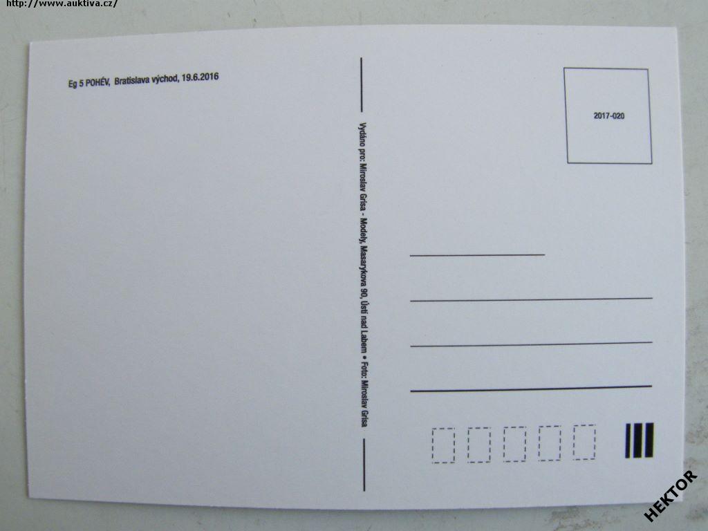 Česká barevná pohlednice – elektrické lokomotivy Eg 5 POHÉV, Bratislava – východ – dne 19. 6. 2016. Nová nepoužitá. Cena je za 1 kus.