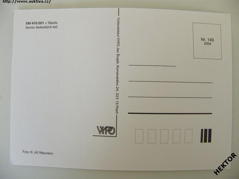 Česká barevná pohlednice - elektrický motorový vůz EM 410.001 ČSD s přípojnými vozy v Táboře koncem šedesátých let. Nová nepoužitá. Cena je za 1 kus.