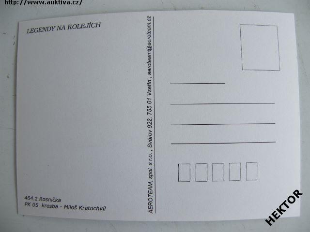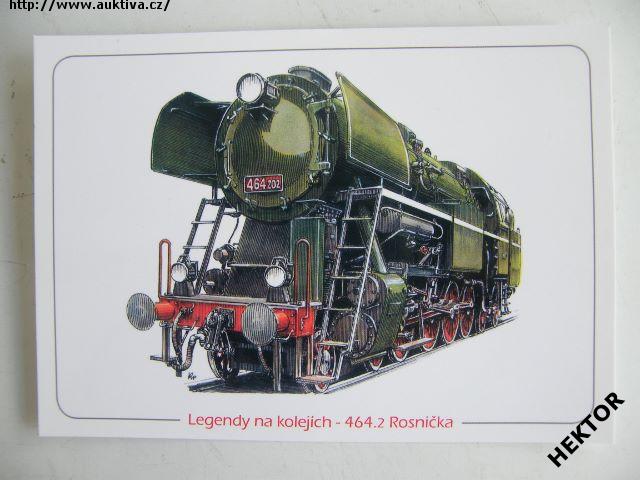 Česká barevná kreslená pohlednice - Legendy na kolejích - 464.2 Rosnička - kreslil Miloš Kratochvíl. Nová nepoužitá. Cena je za 1 kus.