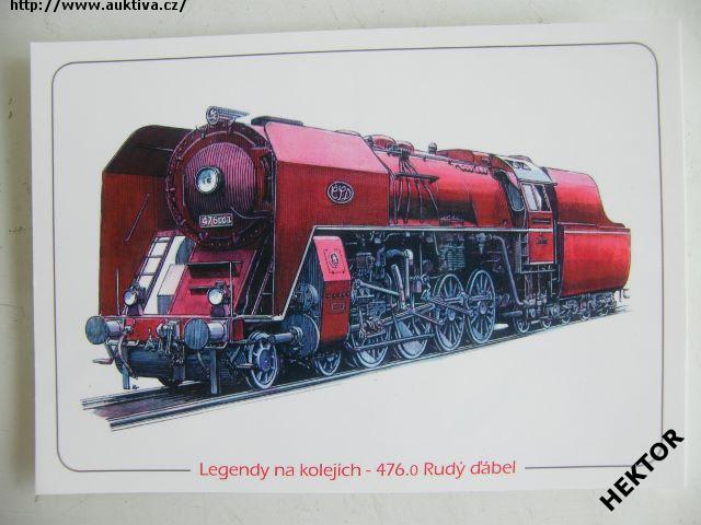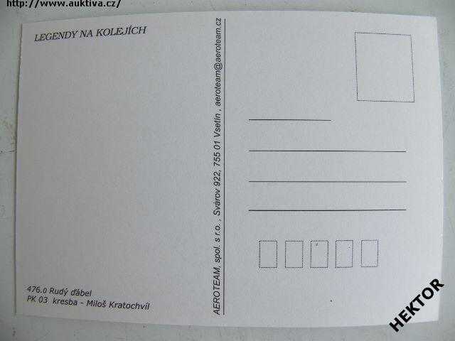 Česká barevná kreslená pohlednice - Legendy na kolejích - 476.0 Rudý ďábel - kreslil Miloš Kratochvíl. Nová nepoužitá. Cena je za 1 kus.