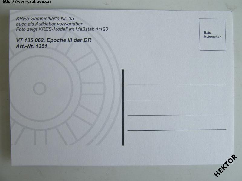 Německá barevná pohlednice - model motorového vozu VT 135 062, epocha III, DR ve velikosti TT - výrobce KRES - Modell. Nová nepoužitá. Cena je za 1 kus.
