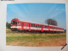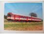 Česká barevná pohlednice - motorový vůz 843.009-2 se 2 osobními vozy mezi Podbořany a Vroutkem na trati Žatec - Plzeň dne 20. 4. 2000. Nová nepoužitá. Cena je za 1 kus.