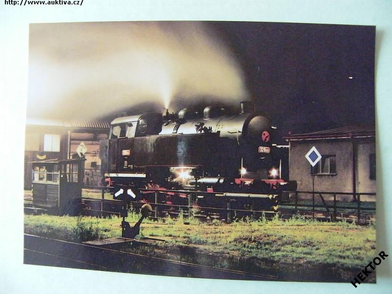 Pohlednice - parní lokomotiva 328.011 - noční foto *1116