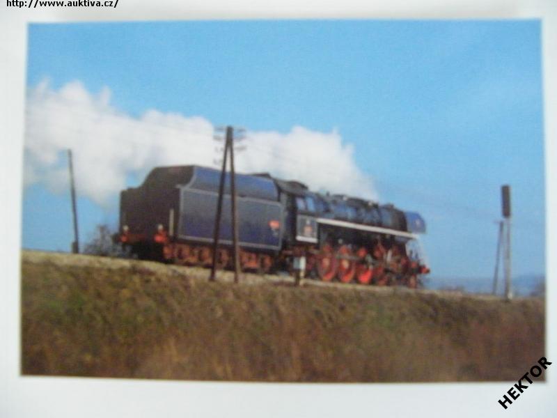 Slovenská barevná pohlednice - parní lokomotiva 498.104 ČSD nazývaná ALBATROS na trati. Nová nepoužitá. Cena je za 1 kus.