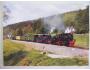 Německá barevná pohlednice – 2 úzkorozchodné parní lokomotivy Aquarius C a 99.4652 s muzeálním osobním vlakem ze dne 23. května 2015. Nová, nepoužitá. Cena je za 1 kus.