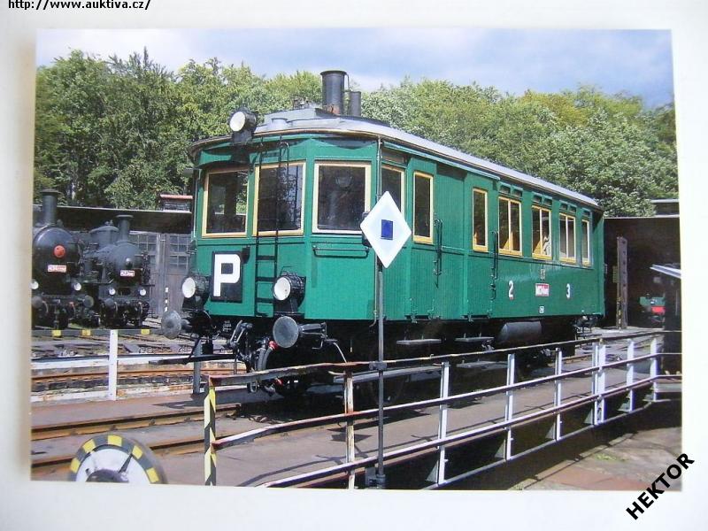 Česká barevná pohlednice - parní motorový vůz M 124.001 ČSD - Komárek - na točně v Železničním muzeu Lužná u Rakovníka. Nová nepoužitá. Cena je za 1 kus.