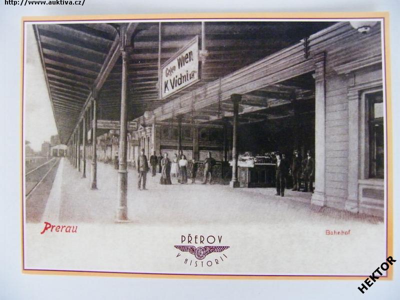 Česká černobílá pohlednice - Přerov - 1. nástupiště koncem 19. století - Přerov v historii. Nová nepoužitá. Cena je za 1 kus.