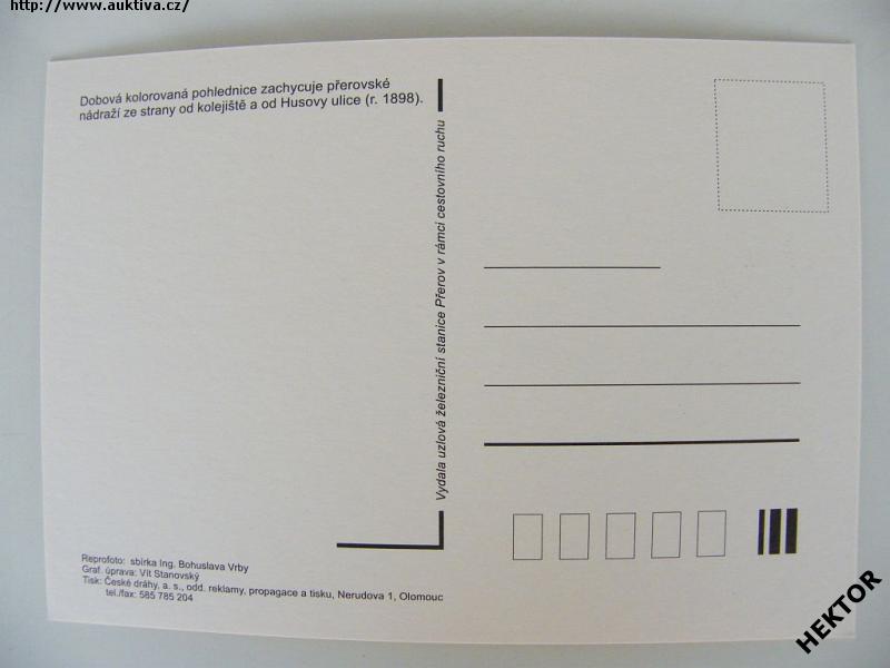 Česká pohlednice - Přerov - dobová kolorovaná pohlednice zachycuje přerovské nádraží ze strany od kolejiště a od Husovy ulice (rok 1898) - Přerov v historii. Nová nepoužitá. Cena je za 1 kus.