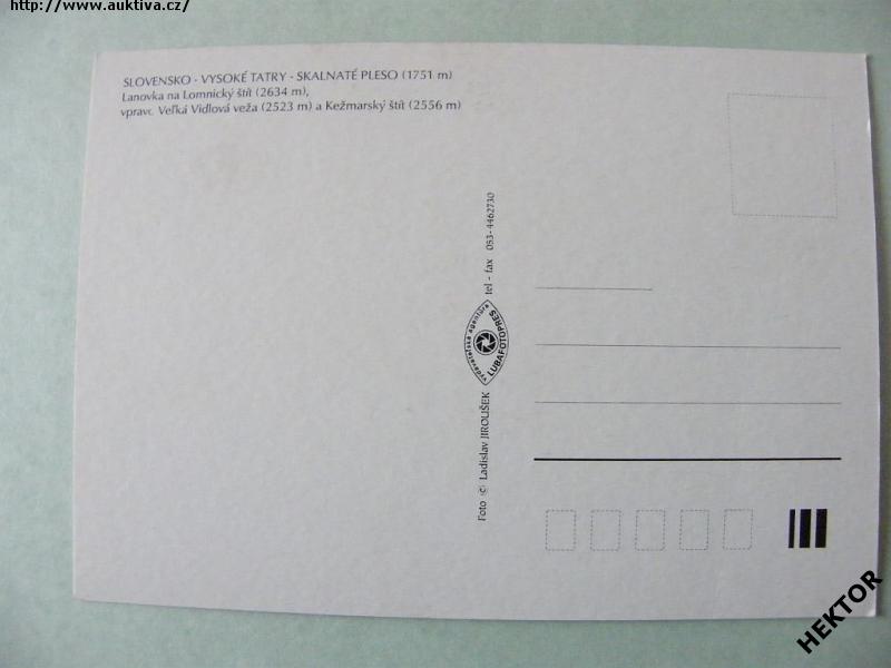 Slovenská barevná pohlednice - Vysoké Tatry - vysutá lanová dráha Skalnaté Pleso - Lomnický Štít - 1 obrázek. Nová nepoužitá. Cena je za 1 kus.