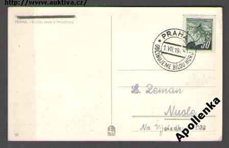Pohlednice, Karlův most a Hradčany, Praha 1945