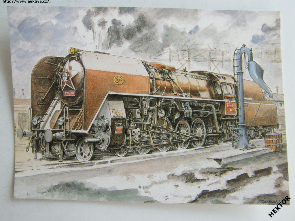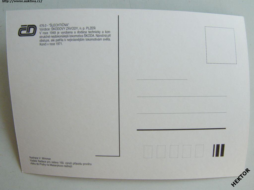 Česká barevná kreslená pohlednice – parní lokomotivy 476.0 „Šlechtična“. Nová nepoužitá. Cena je za 1 kus.