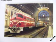 Maďarská pohlednice dieselové lokomotivy M 61.001 - MÁV s osobním vlakem na nádraží Budapešť - Keleti ze dne 26. 10. 2000 - noční fotka. Nová nepoužitá. Cena je za 1 kus.