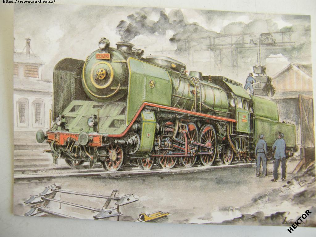 Pohlednice kreslená - parní lokomotivy 387.0 ČSD *6779