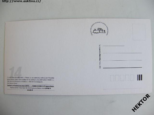 Slovenská barevná široká pohlednice – úzkorozchodné parní lokomotivy U 46.902 a U 45.902 v areálu Muzea Liptovskej dediny v Pribyline se pro zachovalý vozový park Povážskej lesnej železnice se buduje nová muzeální trať. Nová nepoužitá. Cena je za 1 kus.