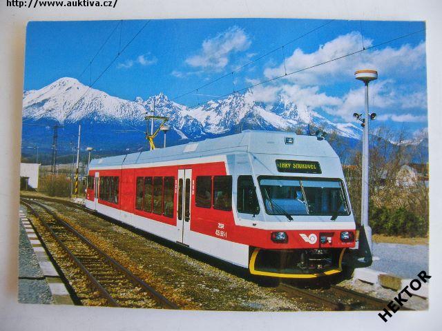 Slovenská barevná pohlednice - Elektrická motorová jednotka 425.951-1 nazývaná „BARÓNKA“ Tatranských elektrických železnic. Nová nepoužitá, ale trochu ohnutá při dopravě. Cena je za 1 kus.
